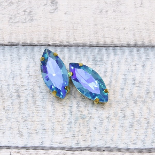 - אבן שיבוץ מרקיזה 15/7 Aqua AB +בסיס זהב