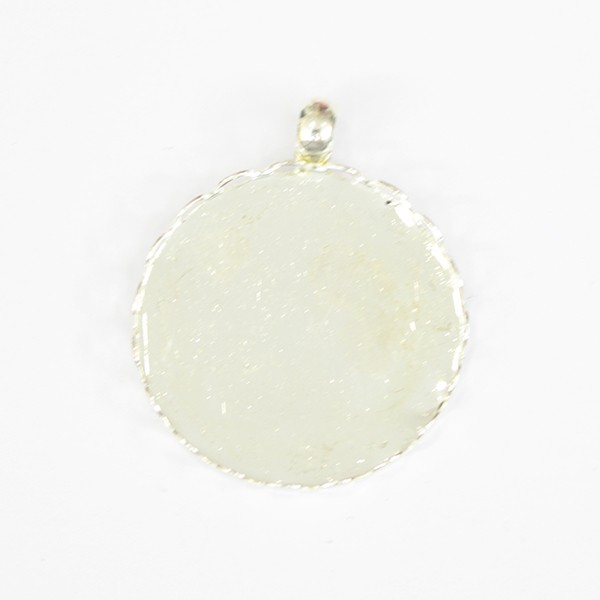 תליון עגול עם מסגרת לעבודה עם חימר או להדבקת אבנים. יש לנקות את התליון לפני עבודה עם החימר. הצבע במוצר זה הינו ציפוי ולכן עלול לדהות. יש לשמור ממגע עם מים, בושם, חומרי ניקוי וכד'.