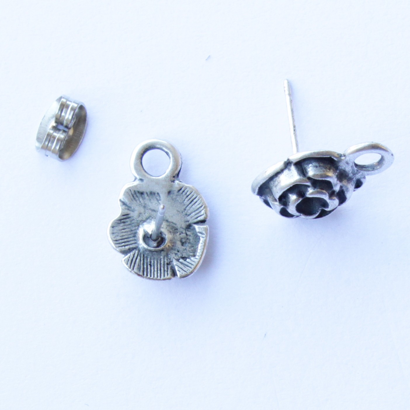 עגיל פרח עם לולאה כסף עתיק