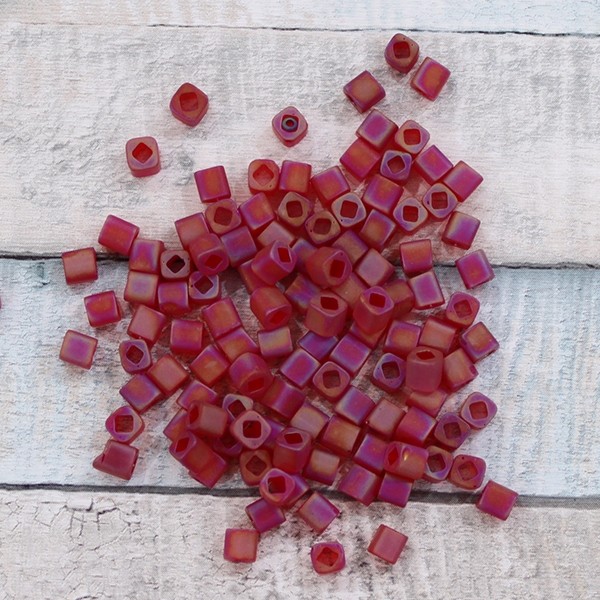 Transparent-Rainbow-Frosted Ruby קוביות בעלות חור רחב ומעוגל לשמירה על החוט. בצבעים ייחודיים לטוהו ניתן לשלבם בכל טכניקת חריזה למראה ייחודי ומרהיב. מתאימים לעבודה עם כל סוגי החוטים. מומלץ לעבודה עם מחטים בעובי 10-11